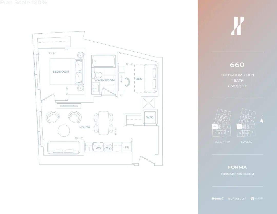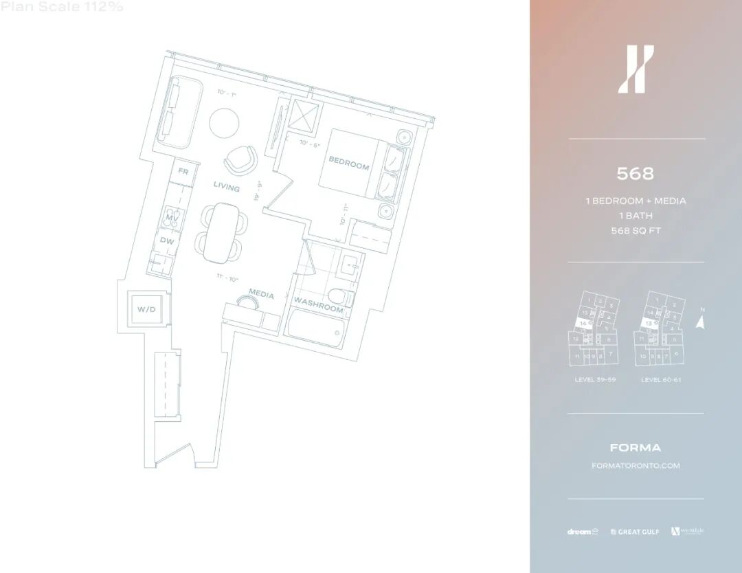 由世界著名建筑师弗兰克·盖里(Frank Gehry)设计的Forma Condos,是由Great Gulf、Dream Unlimited和Westdale Properties共同打造。与其他公寓相比,Forma Condos在规模和设计元素方面独树一帜。有两座73层和84层高的塔楼,西塔高298米,东塔高262米,比加拿大任何住宅都要高。每座塔楼都将拥有互补但又截然不同的设计,与充满活力的社区历史和质感完美融合。从世界各地的一流设计师作品中汲取灵感,Studio Paolo Ferrari采用了流畅的曲线设计,选用了大理石、胡桃木、橡木和石英等具有纪念意义的材料,整体外观既经典又不落俗套。这个预建项目位于King Street West 266号,在娱乐区的Ed Mirvish Way 和 John Street西部之间。对于喜欢美食、美酒和生活娱乐的人来说,这里就是圣地。
