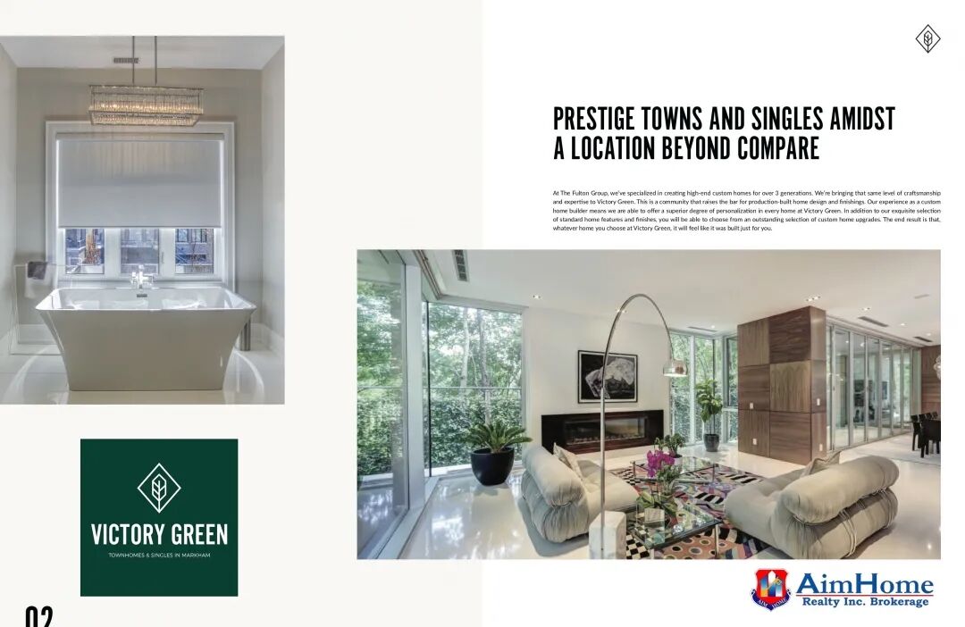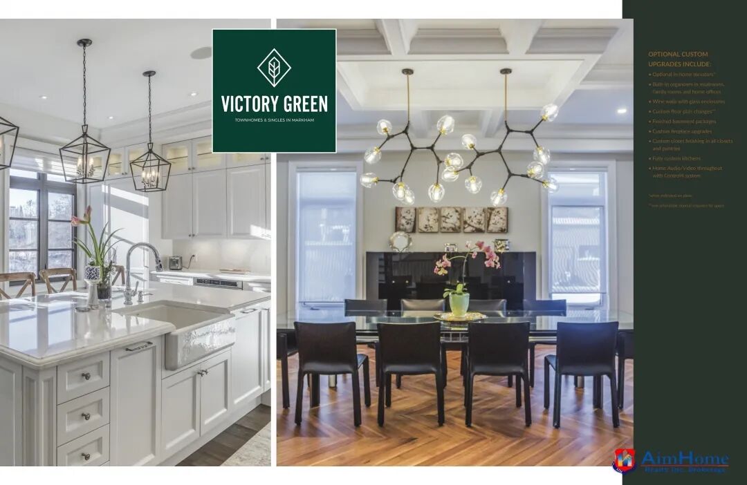 Victory Green 将会是一个全新大型的住宅社区,地理位置优越,距万锦繁华的市中心仅数分钟车程,附近生活设施一应俱全,Costco,Canadian Tire,Home Depot,CF Markville,GO Transit,高尔夫俱乐部,一流的社区设施,相当理想的生活圈。