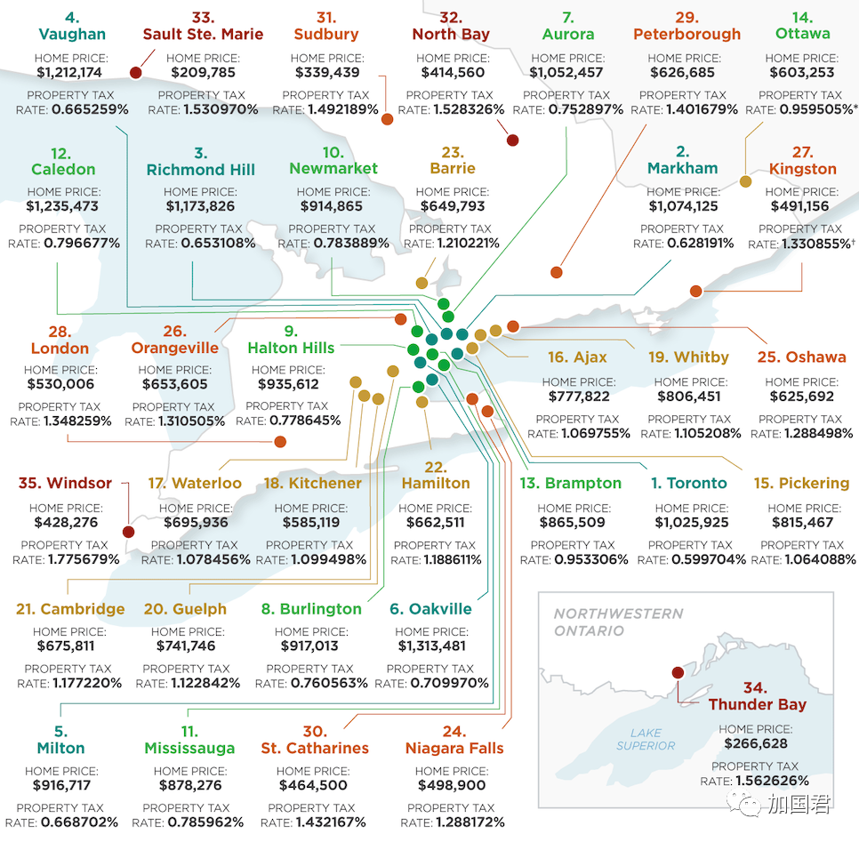 近日,多伦多一个地产网站总结安省35个城市的地税排名,或许当中可以看出其中的玄机。