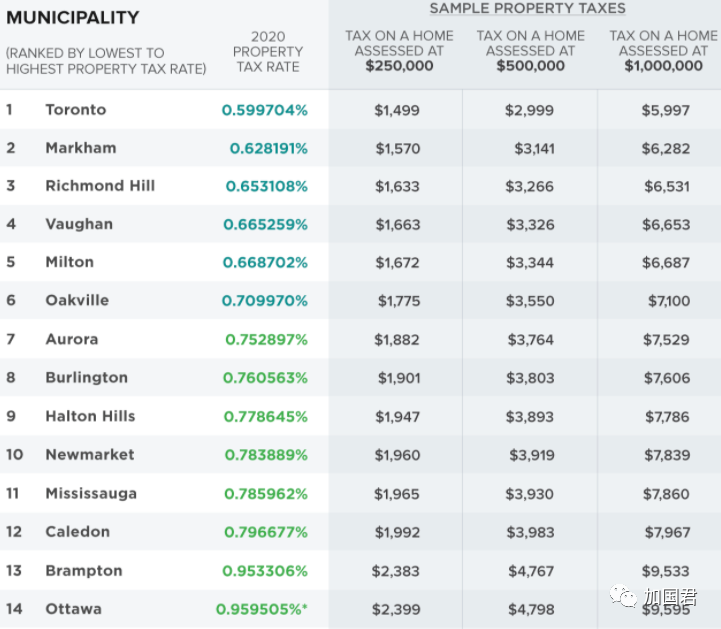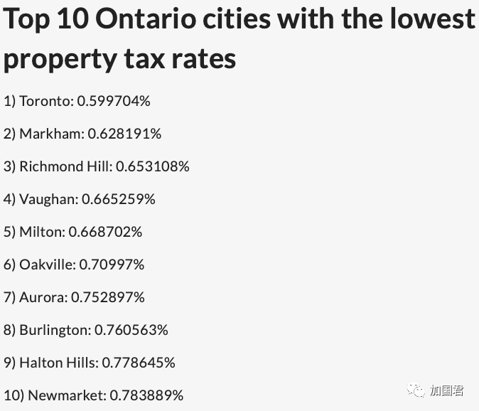 安省地税税率最低的10个城市全在大多伦多地区。