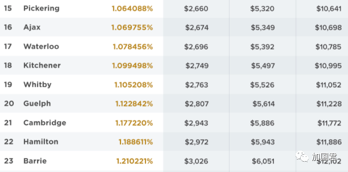 看完这个税率表,大家现在就明白,为什么大部分华人喜欢聚居在士嘉堡、万锦和列治文山啦,当然还有名校林立等其他因素。