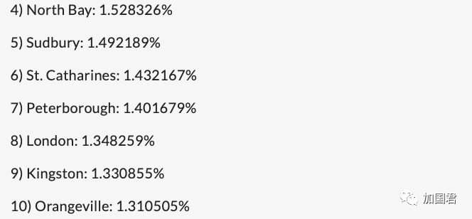 看看安省35个城市的整个排名表,低于1%的城市有14个