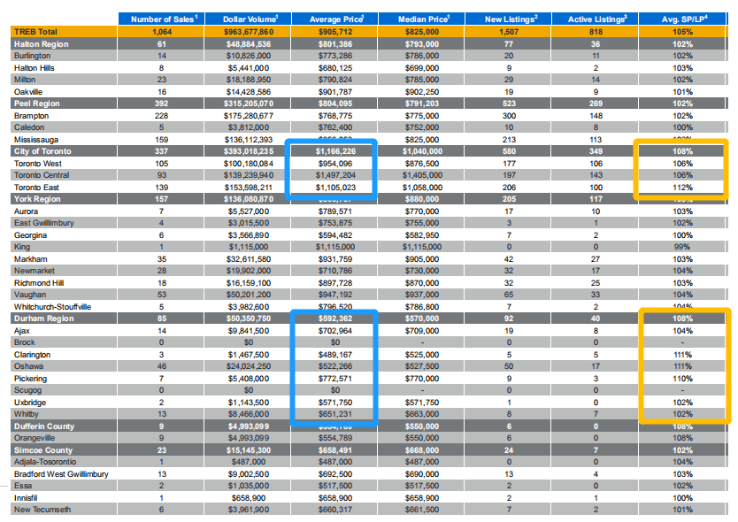 Duhram依然是热捧地区,半独立屋涨幅, Clarington, Oshawa, Pickering 都平均有超过10%叫价的成交。