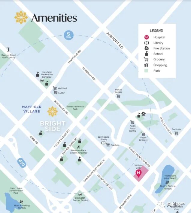 Mayfield Village 的 Bright Side 是希望减少日常通勤时间的专业人士的理想居住地。便利的交通可使驾车者快速进入 410 号高速公路,并且仅仅需要40 分钟即可抵达多伦多市中心。