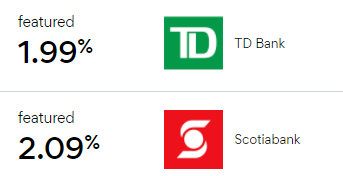 各大银行给出的利率也相当诱人:HSBC利率为1.76%,TD银行利率为1.99%,Scotiabank利率为2.09%。